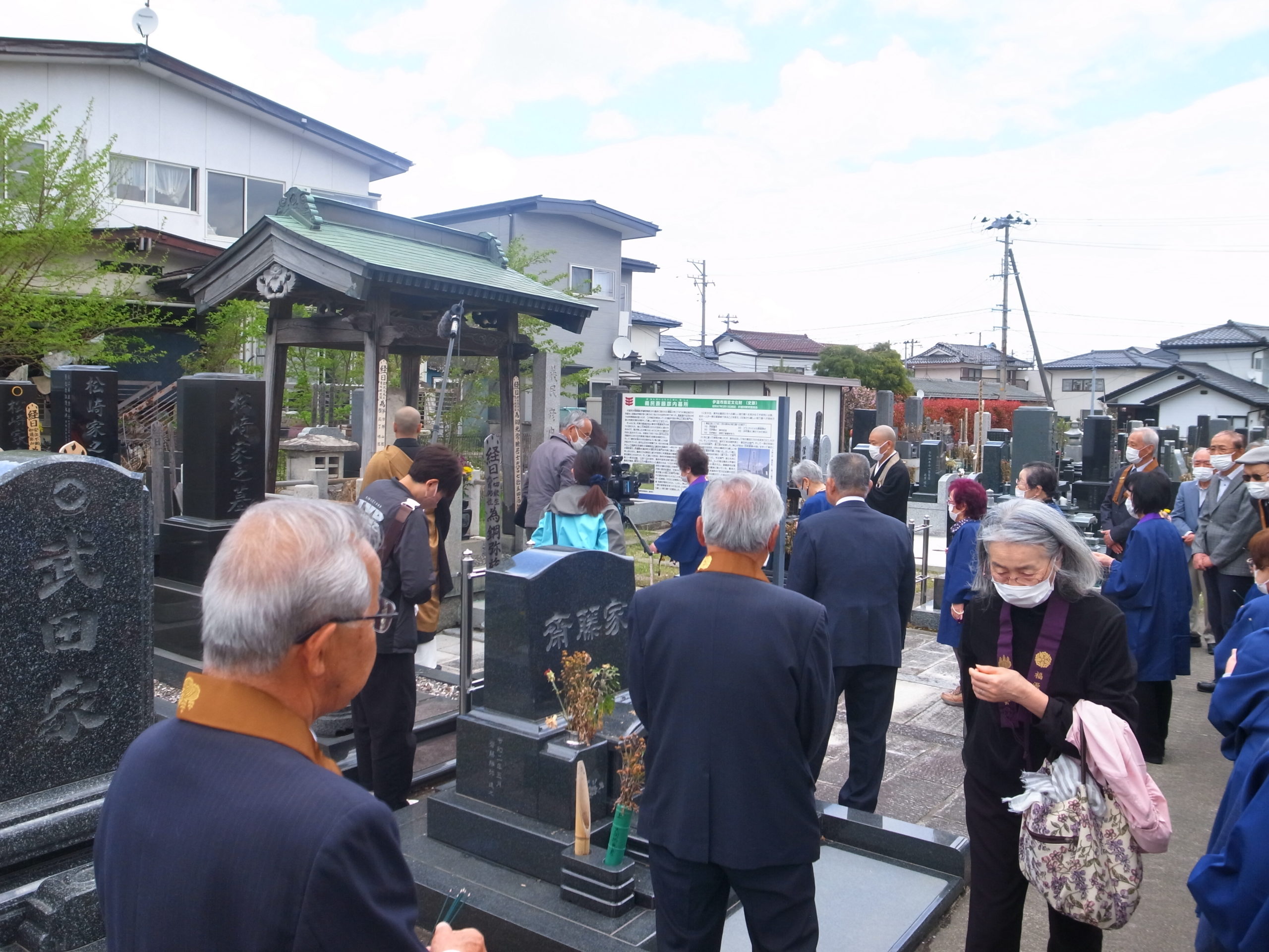 当日は処刑の地、産ヶ沢、田町薬師堂記念碑前、福源寺本堂、墓前にてお勤めを致しました。